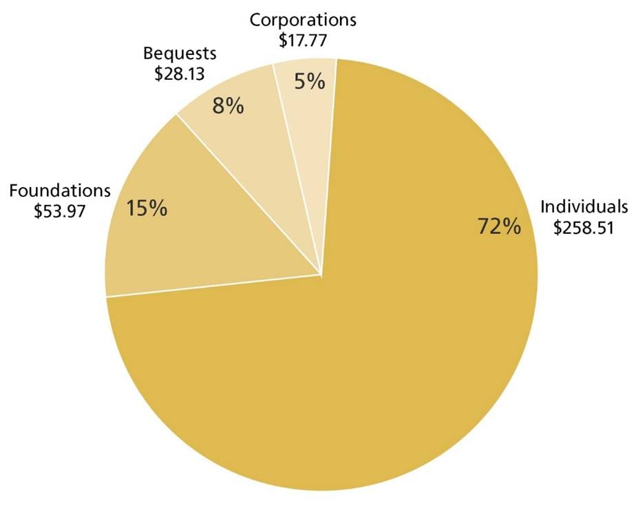 - Large gifts, of $200 million or more, made a large impact.